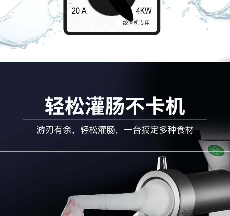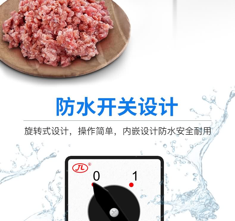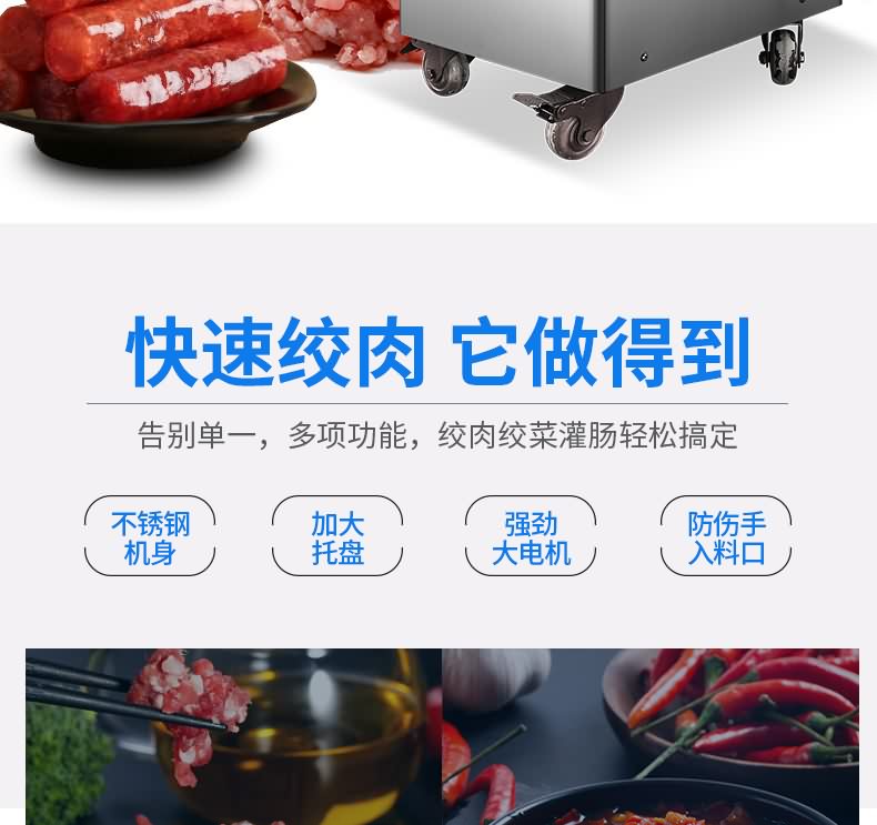 艾博馳ABCH-L32A絞肉機(jī)(高強(qiáng)度承重輪),內(nèi)置RV減速箱,速度大,回差小,振動低,承受能力強(qiáng),更可靠。入料口防護(hù)擋板,3毫米不銹鋼機(jī)身,2.2大功率國標(biāo)全銅芯電機(jī),防水開關(guān),不銹鋼網(wǎng)板刀組,不銹鋼帶剎車萬向輪.贈送原裝十字刀,孔板,搗肉棒,灌腸喇叭口一套.標(biāo)配絞肉網(wǎng)板6和8毫米。