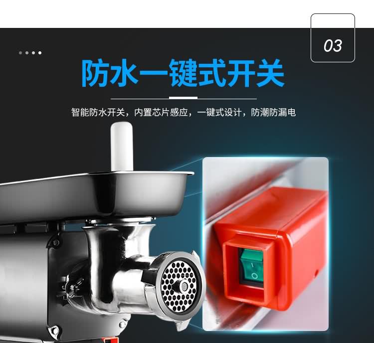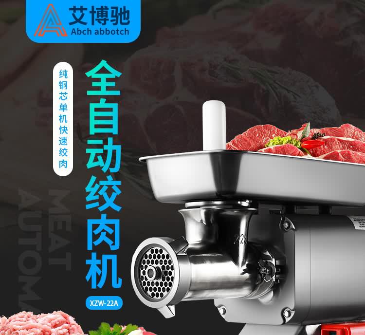 艾博馳ABCH-W12A/22A臥式絞肉機(可絞-5度左右凍肉,防水開關(guān),1.5毫米加厚不銹鋼機身邊.緣鈍化處理不傷手,4CR13不銹鋼強勁刀組,耐受力是普通刀片5倍.10公分大口徑入口,國標(biāo)同芯電機,保修一年,贈送原裝十字刀,孔板,搗肉棒,灌腸喇叭口各一個,標(biāo)配絞肉網(wǎng)板6和8毫米。