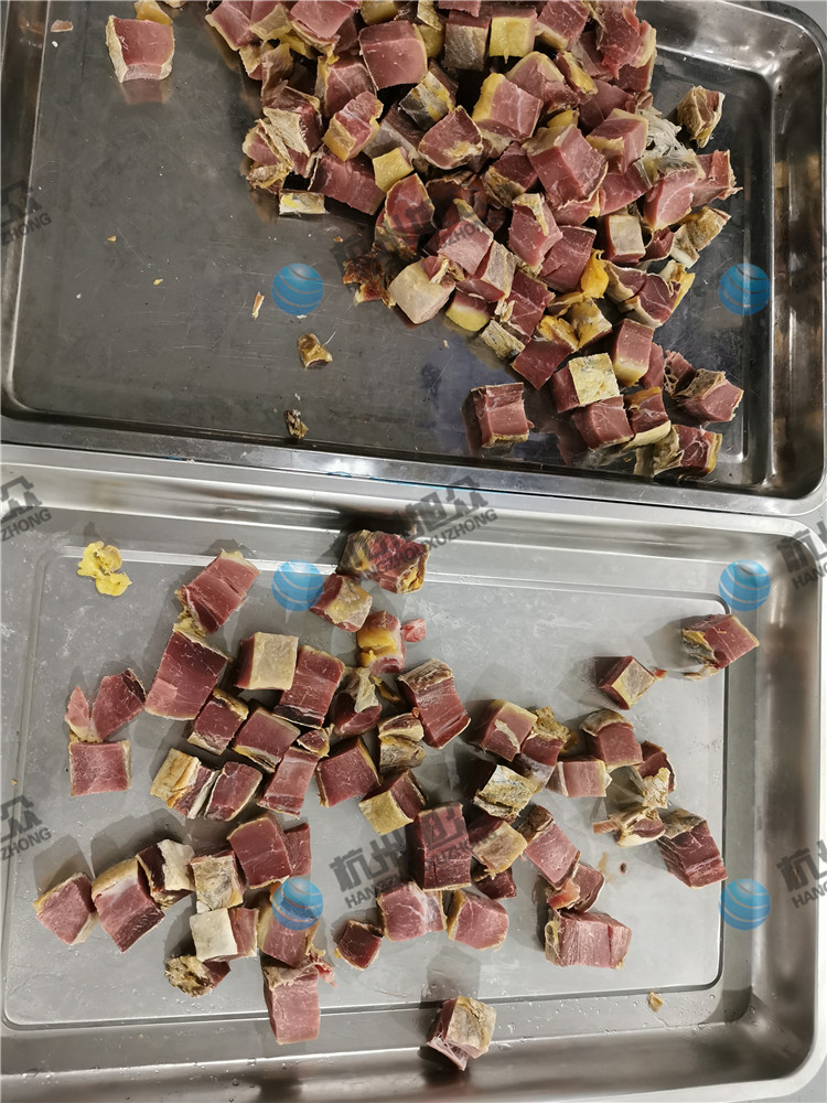 新款XZ-130A禽肉類的剁塊機(jī),是XZ-130禽肉類剁塊機(jī)的升級(jí)版,剛上新就有不少客戶紛紛來(lái)試機(jī)購(gòu)買,以下案例是一客戶親自帶物料來(lái)廠試機(jī)效果展示。
