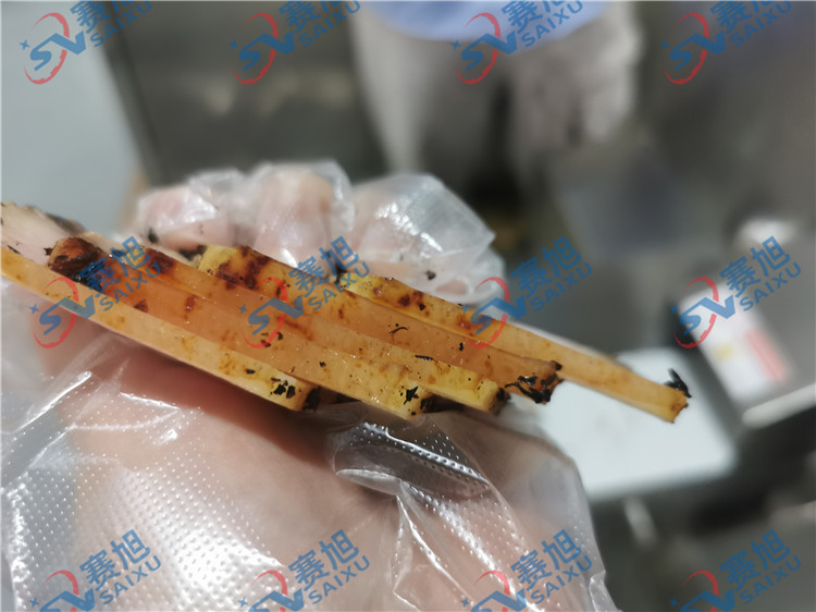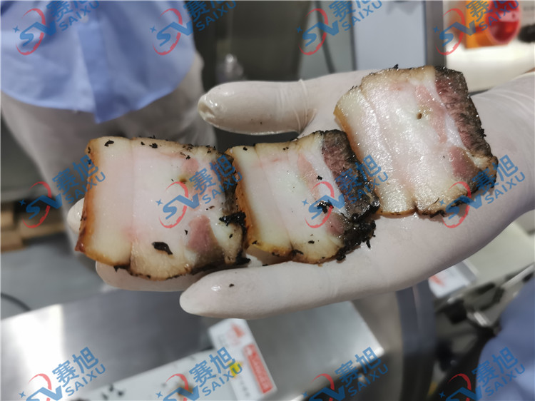 一客戶帶了幾塊梅干菜扣肉來到本廠試機,這客戶他們的產(chǎn)量一天好機千斤,一直想買一臺合適的設備去代替人工,因為人工的成本太高了,所以一直在選合適的設備,于是再網(wǎng)上看到我們公司的信息,聯(lián)系到了我們,然后就安排來廠免費試機,設備呢也沒讓客戶失望,客戶當場定購設備,直接提貨!來看看效果有多好: